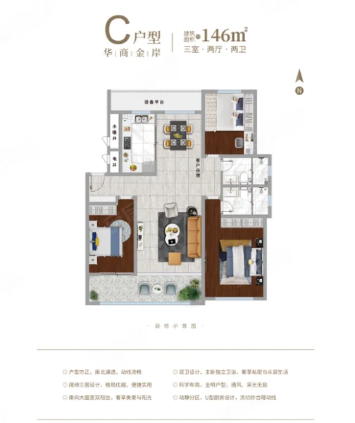 3 室 2 厅 2 卫