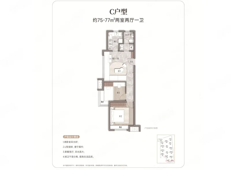 2 室 2 厅 1 卫